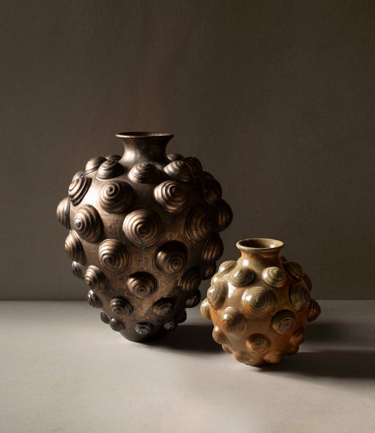 Spiral Pots are a study in form repetition and the anachronistic qualities of wheel-thrown patterns, in this case the spiral. Spiral motifs commonly appear in ancient pottery as it is a quick and effective surface decoration, only requiring one steady and swift motion with the hand. As a symbol, the spiral represents growth, expansion, and transformation.